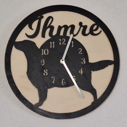 Ik heb voor deze klok gekozen voor een rasstaandaard figuur, maar het is natuurlijk ook mogelijk om een foto van je eigen hond op te sturen waar ik een silhouet van maak.